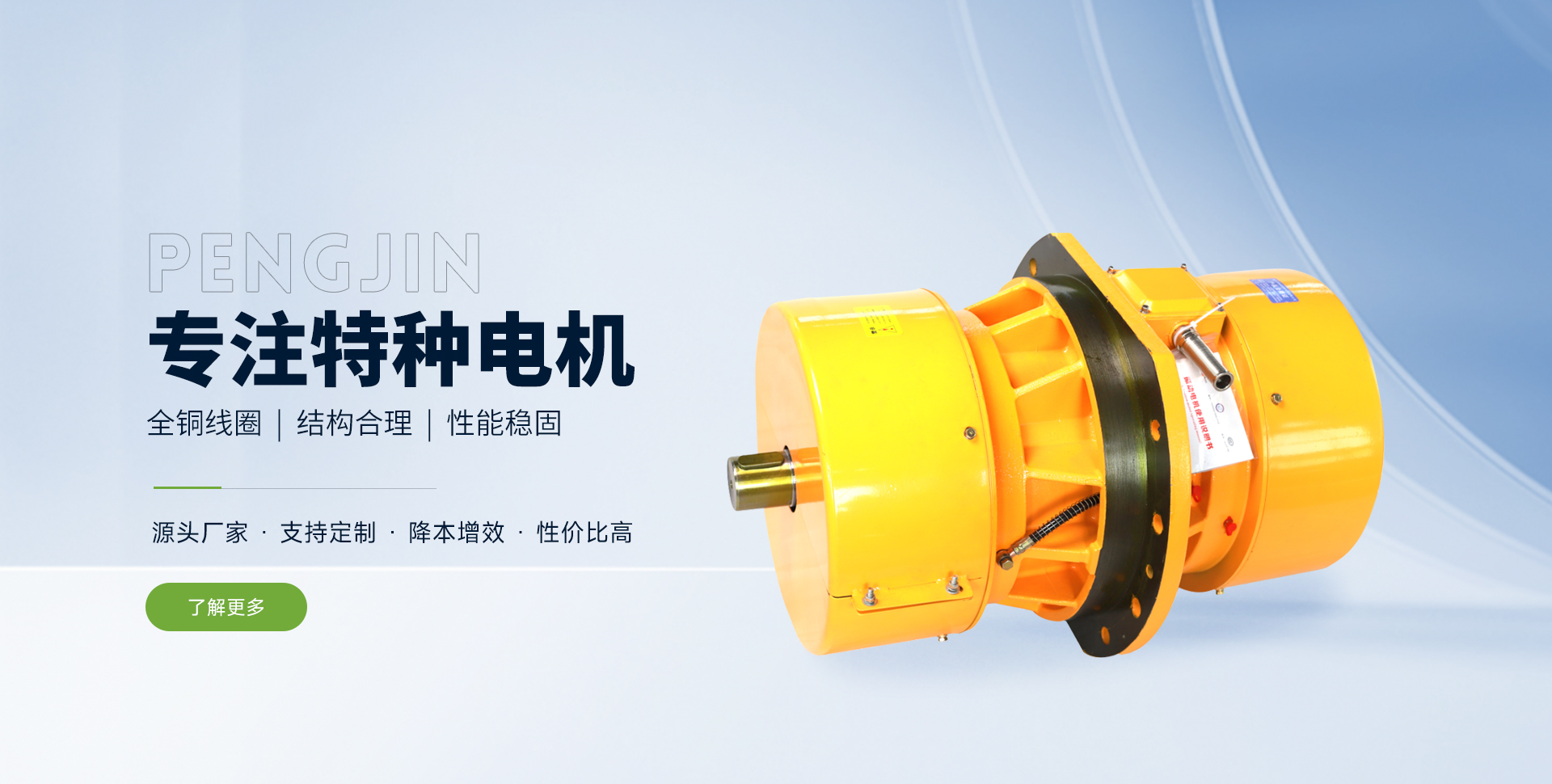 Company Profile新鄉市鵬錦特種電機有限公司是生產各類特種電機的制造商。 公司位于中原地區的河南省新鄉市關堤創業園區。緊鄰107國道,距京珠高速公路新鄉站僅3公里,交通極為便利。公司在工業園區內的標準化廠房建有規范的電機制造、組裝、檢測生產流水線。同時配備了軸承裝配,數控繞線,真空絕緣處理,轉子動平衡調試,數控車床,電機出廠試驗微機處理系統等的工藝裝備和制造檢測設備。目前公司生產的所有產品絕緣等級均為F級以上,提升了產品品質,有力貫徹了“在持續的質量保證體系下,始終提供客戶滿意的產品和服務”的公司產品服務方針。公司產品質量穩定,歷年通過,行業、省市技術監督局的產品質量檢測?! 」颈小翱萍记笙龋a品求實,管理求真,服務求誠”的經營理念,努力打造支意識靠前,技能高的高素質團隊;長期與國內行業科研所和部分院校保持良好的合作關系,了解掌握行業動態;在技術研究方面投入大量資金,堅持不地研制、引進國內外各類先進適用的新型產品和制作工藝;針對各行業客戶的具體要求,量身設計,制造出工況適用,性能穩定的專用電機?! ∥覀兊漠a品廣泛應用于動力、控制、冶金、起重、鑄造、造紙、煤炭、醫藥、食品、礦山、線纜、印刷、包裝、環保工程及新能源等各領域的不同工業機械中,受到了客戶的認可和好評。